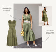 Oversized, statement belts bring definition to flowy spring dresses and help create a balanced silhouette. Elevate the look with statement heels and bags that add texture and a touch of luxury.